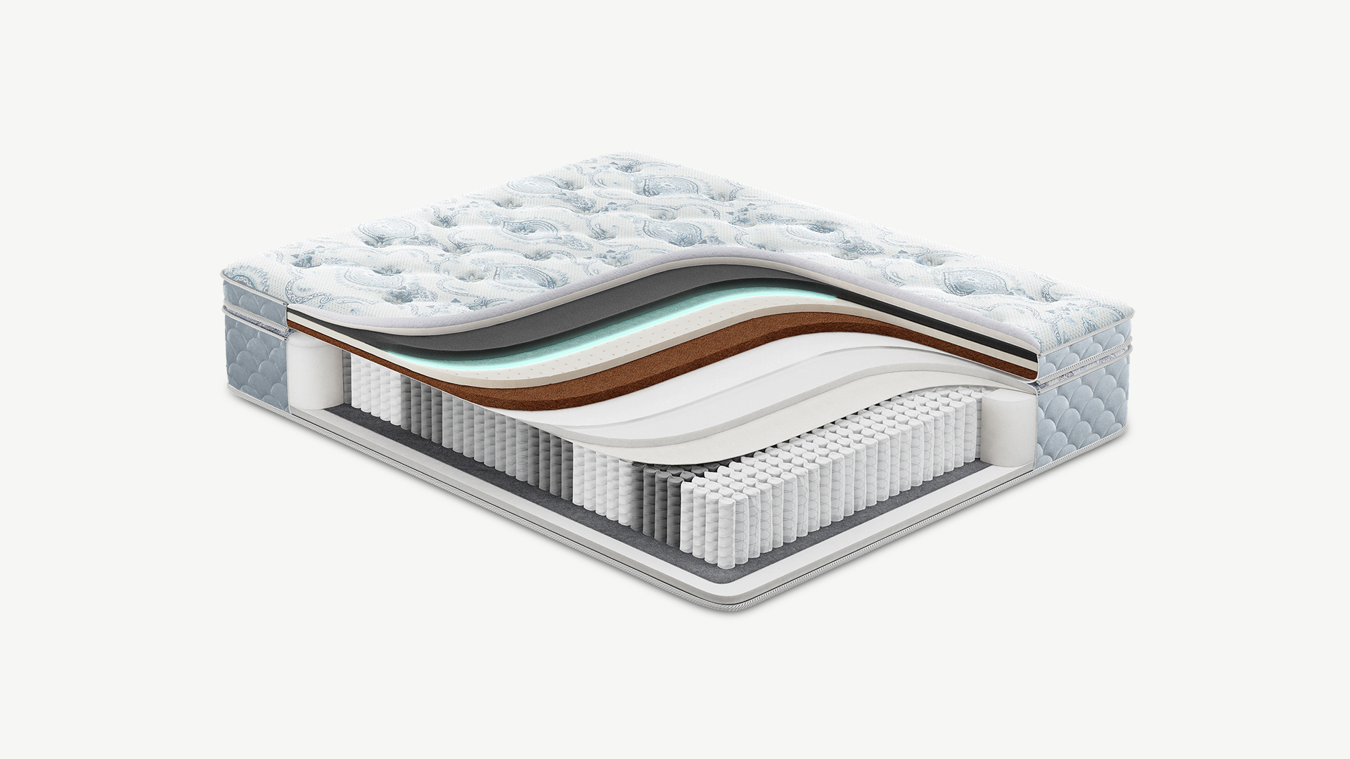 Надежно изолирует комфортные слои от соприкосновения с пружинным блоком и защищает материалы наполнения матраса от износа.