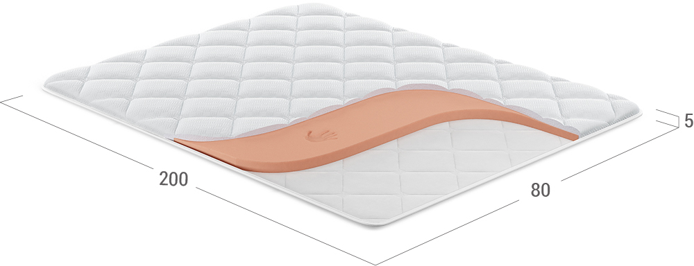 Этот тонкий беспружинный матрас высотой 5 см не только скорректирует несовершенства спального места, но и защитит его поверхность от загрязнений.