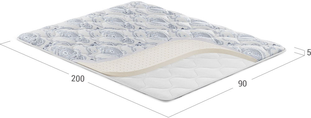 В основе топпера — натуральный латекс Latexgold, который обеспечивает упругую поддержку тела, снимает нагрузку с мышц и поддерживает физиологически естественное положение позвоночника, предотвращая возникновение излишнего прогиба в поясничном отделе.