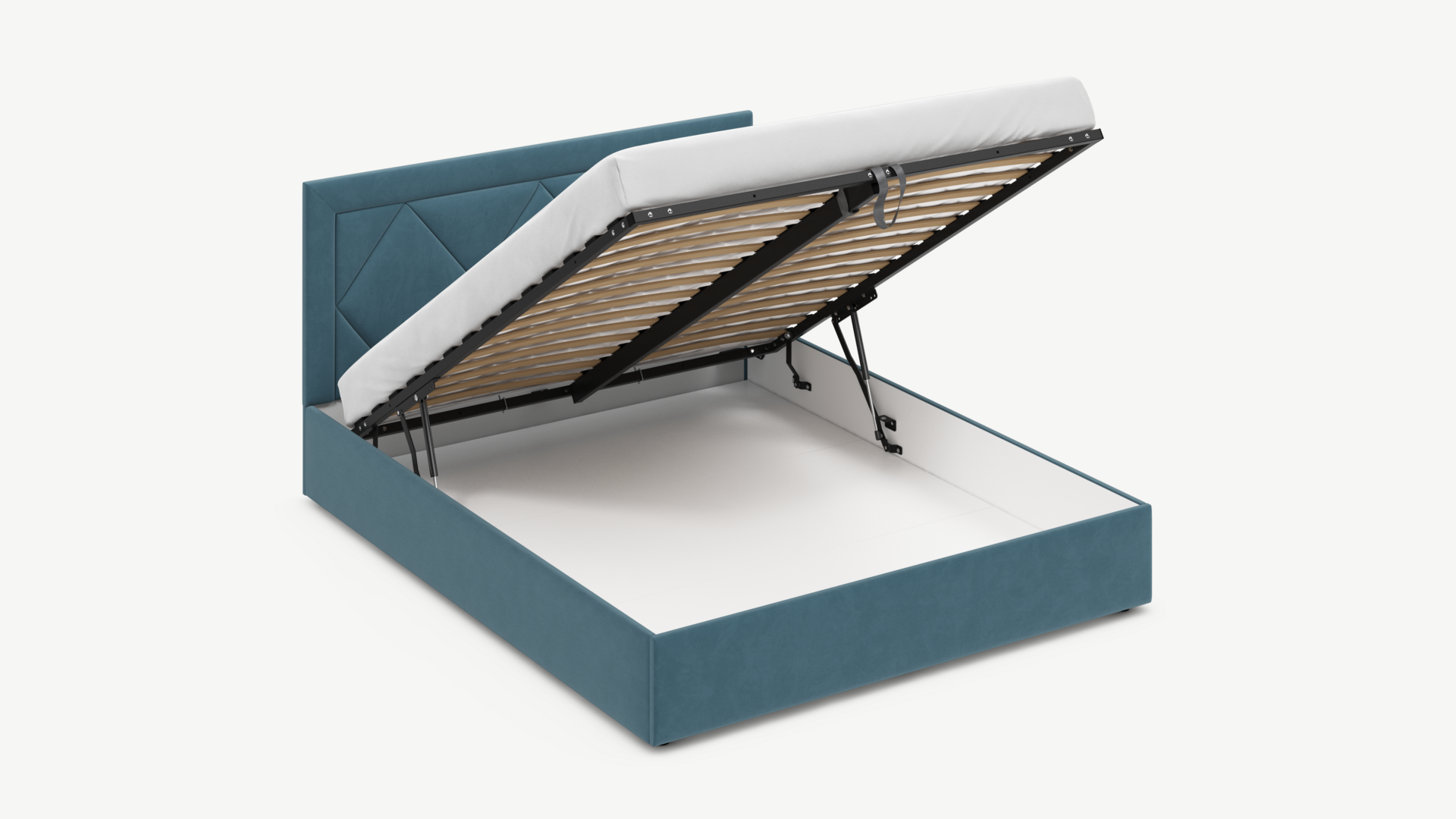 • Скрытая под основанием вместительная емкость без внутренних перегородок позволяет использовать всю площадь подкроватного пространства для хранения вещей.