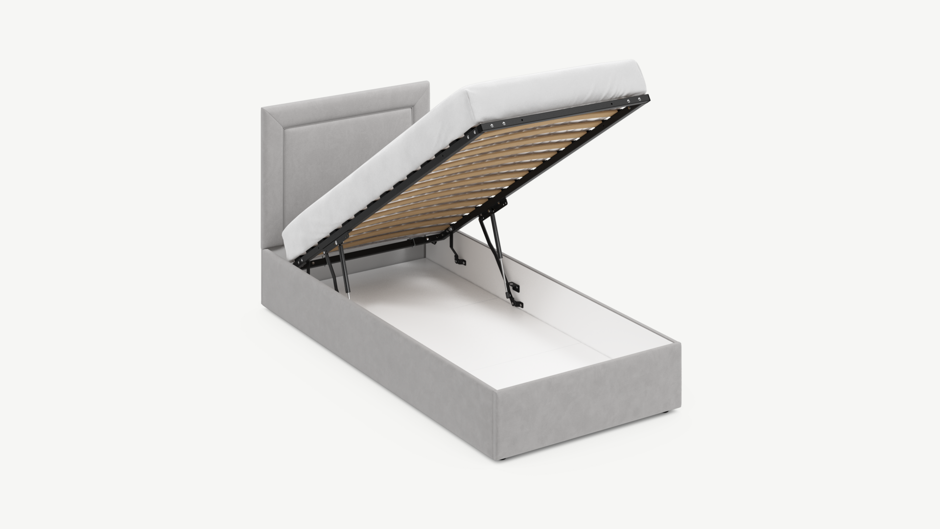 Регулируемый подъемный механизм с газовыми амортизаторами позволяет плавно и бесшумно поднимать и опускать спальное место.
