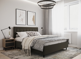 Фактура обивочного материала подбирается дизайнерами с учетом технологических и стилевых особенностей кровати.