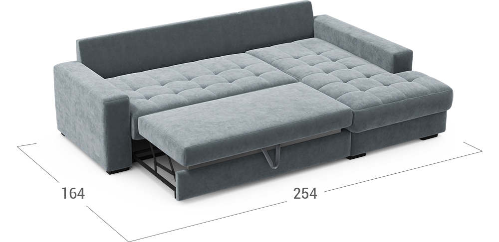 Секция канапе позволяет принять положение полулежа. Под данной секцией расположен вместительный бельевой короб.