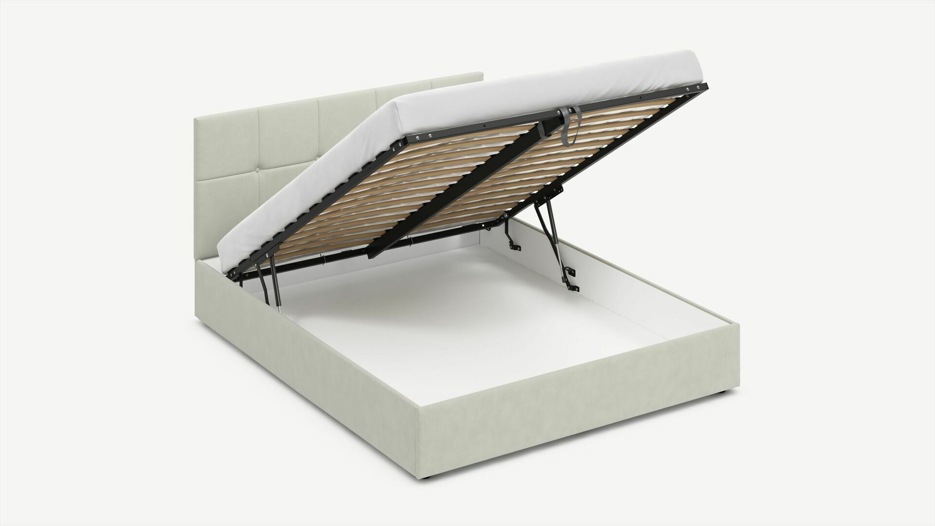 • Скрытая под основанием вместительная емкость без внутренних перегородок позволяет использовать всю площадь подкроватного пространства для хранения вещей.